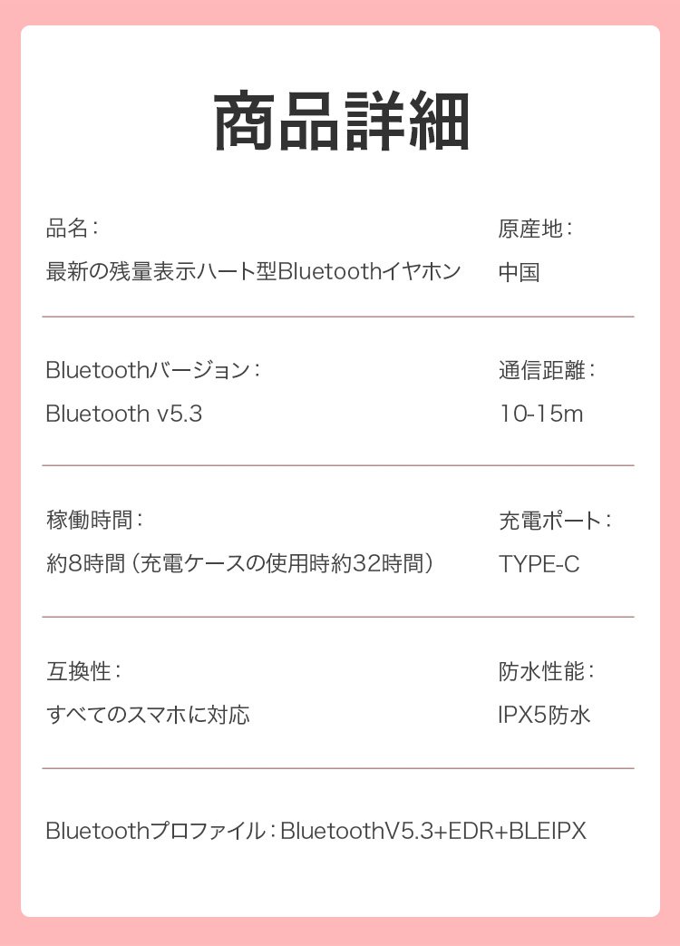 ハート型Bluetoothイヤホンの可愛いデザイン
