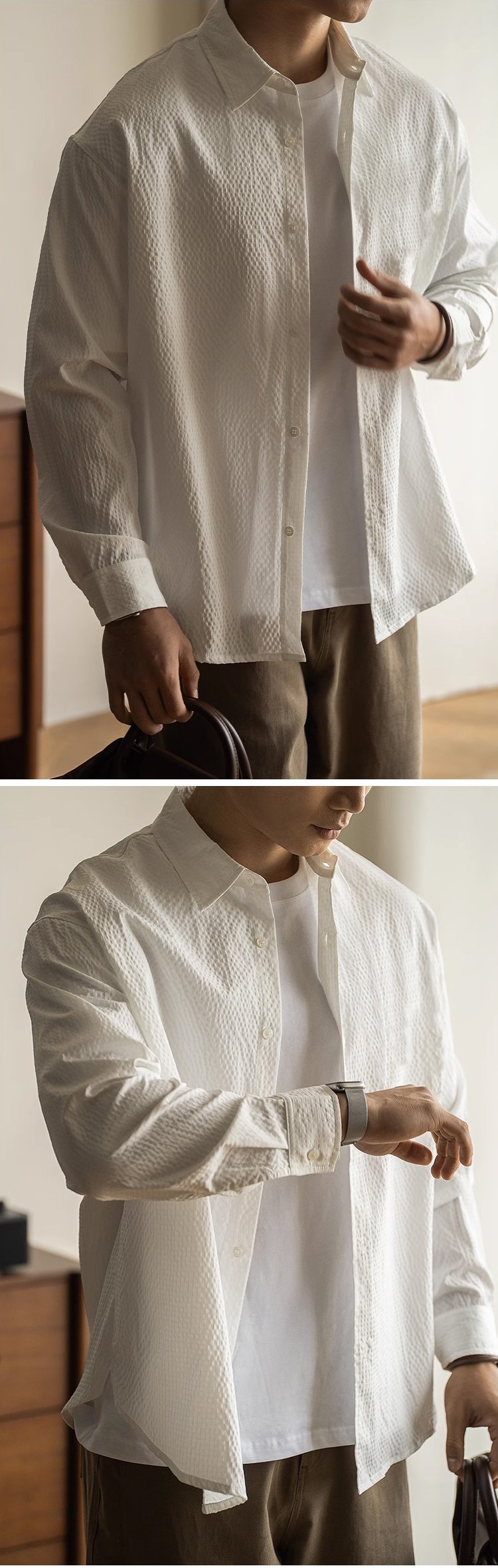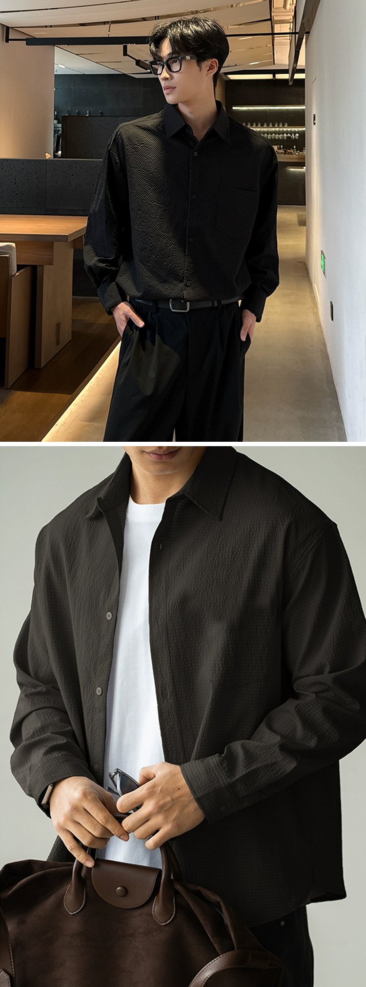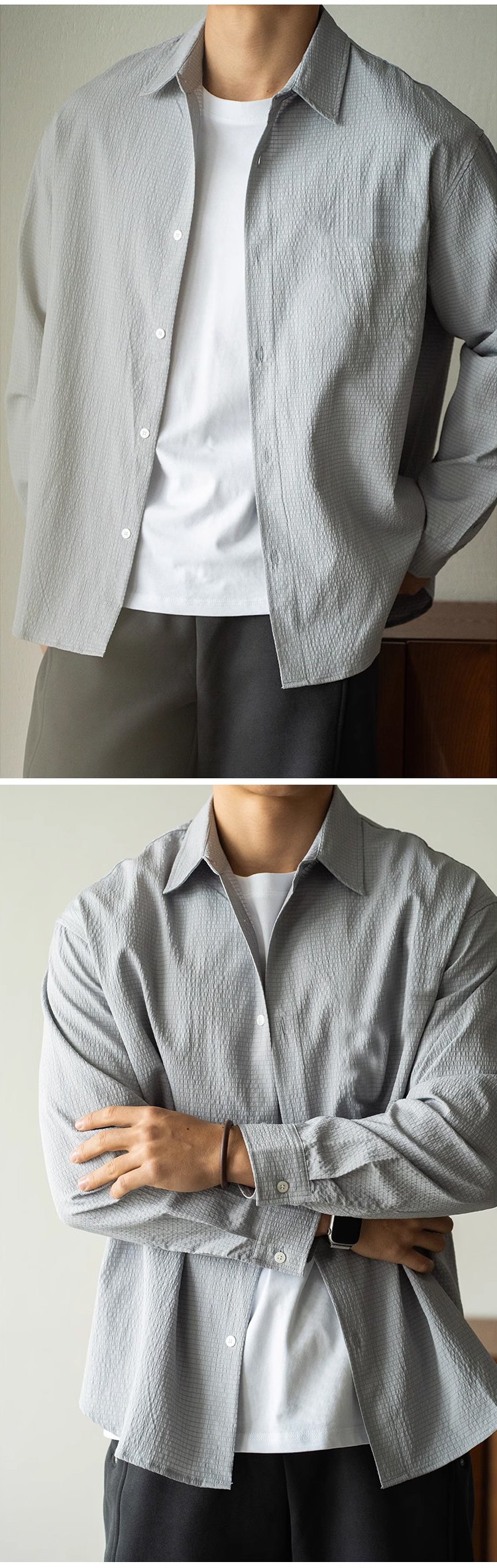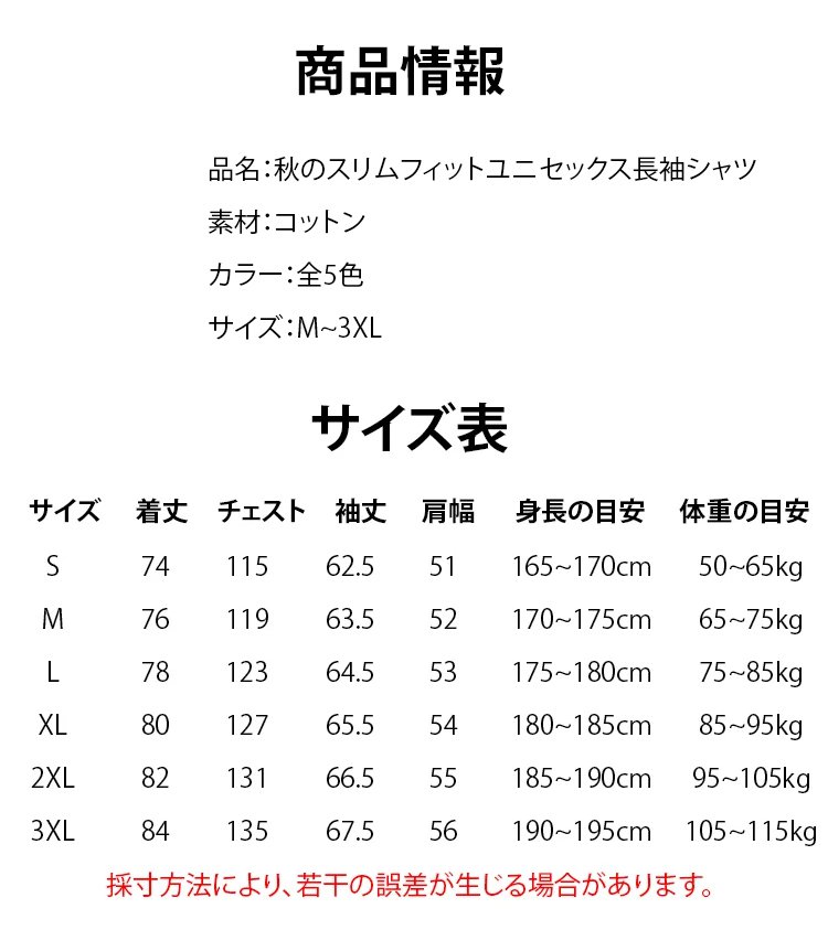 秋のスリムフィットユニセックス長袖シャツ