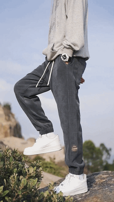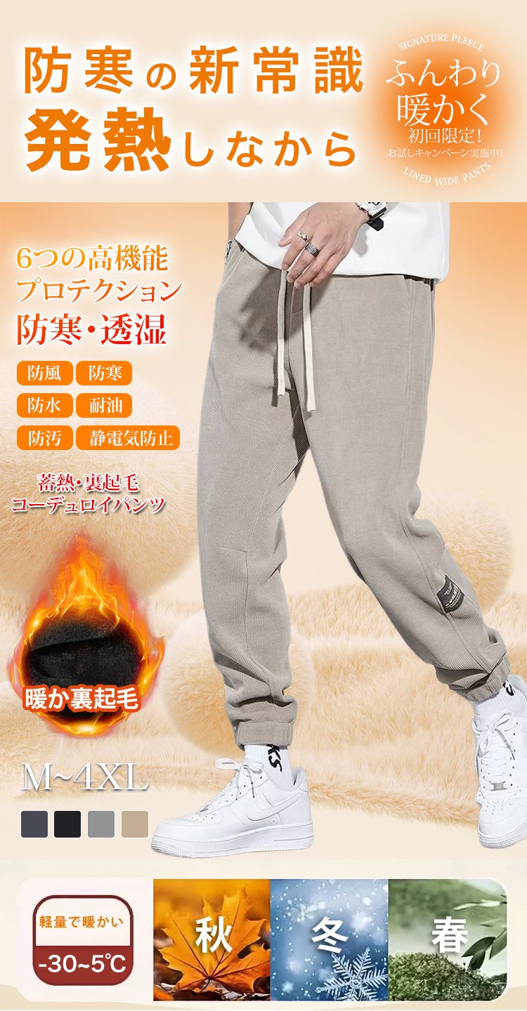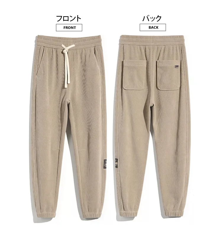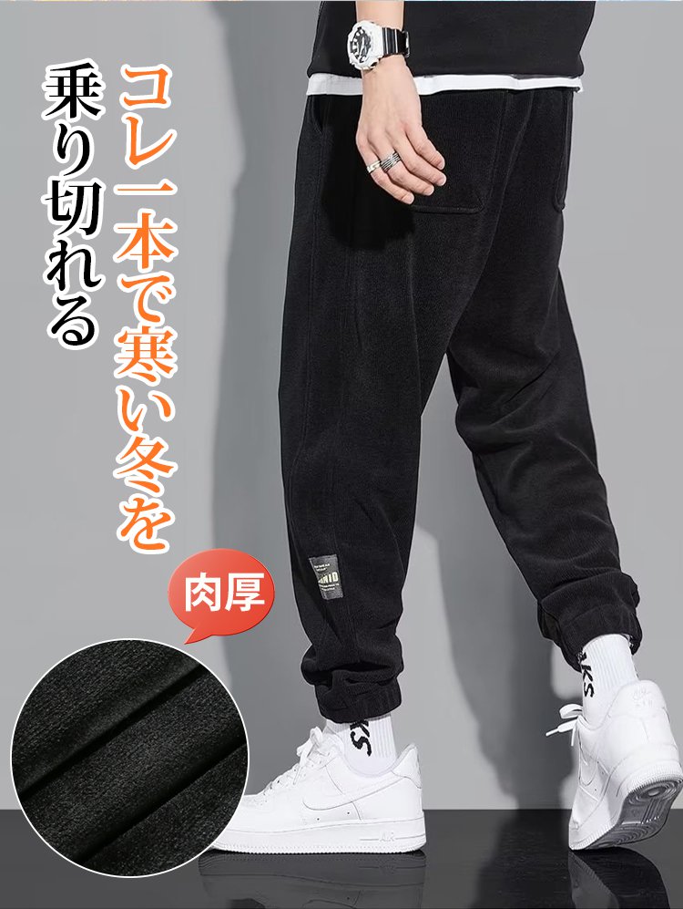 冬用メンズ裏起毛ジョガーパンツ コーデュロイライク